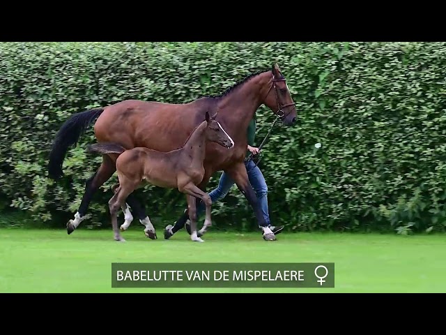 Babelutte is one of the special fillies of this years collection. This young, blood-bred foal stands out for its flexibility and strong movements. Father of this filly is the rising star of the sport nowadays; Ermitage Kalone. Mother Persil van de Mispelaere was herself active in the sport before putting in the breeding program of the family Vermeulen. She is the sister of two international showjumpers and goes back to the “Mispelaere” damline who produced Wandor van de Mispelaere and many others.