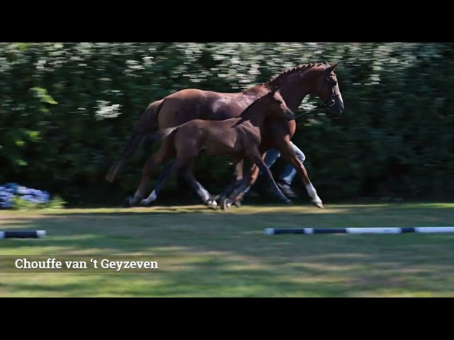 Chouffe valt op door zijn grootramige model, sterke afdruk en royale galop. Zijn moeder, Sientje van ’t Geyzeven, is de zus van twee internationale Grand Prix-paarden, waaronder Origi van ’t Geyzeven, die momenteel hoge ogen gooit in het 5 GCL-circuit. Daarnaast is zij ook de moeder van Wifi van ’t Geyzeven, die groen licht kreeg tijdens de tweede fase van de BWP-hengstenkeuring.